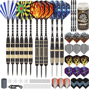 Darts Metal Tip Set Professional Metal Darts for Dartboard Steel Tip Darts with Nonslip Iron Barrel Aluminum Dart Shafts,Extra Flights,Dart Sharpener,Gift Box