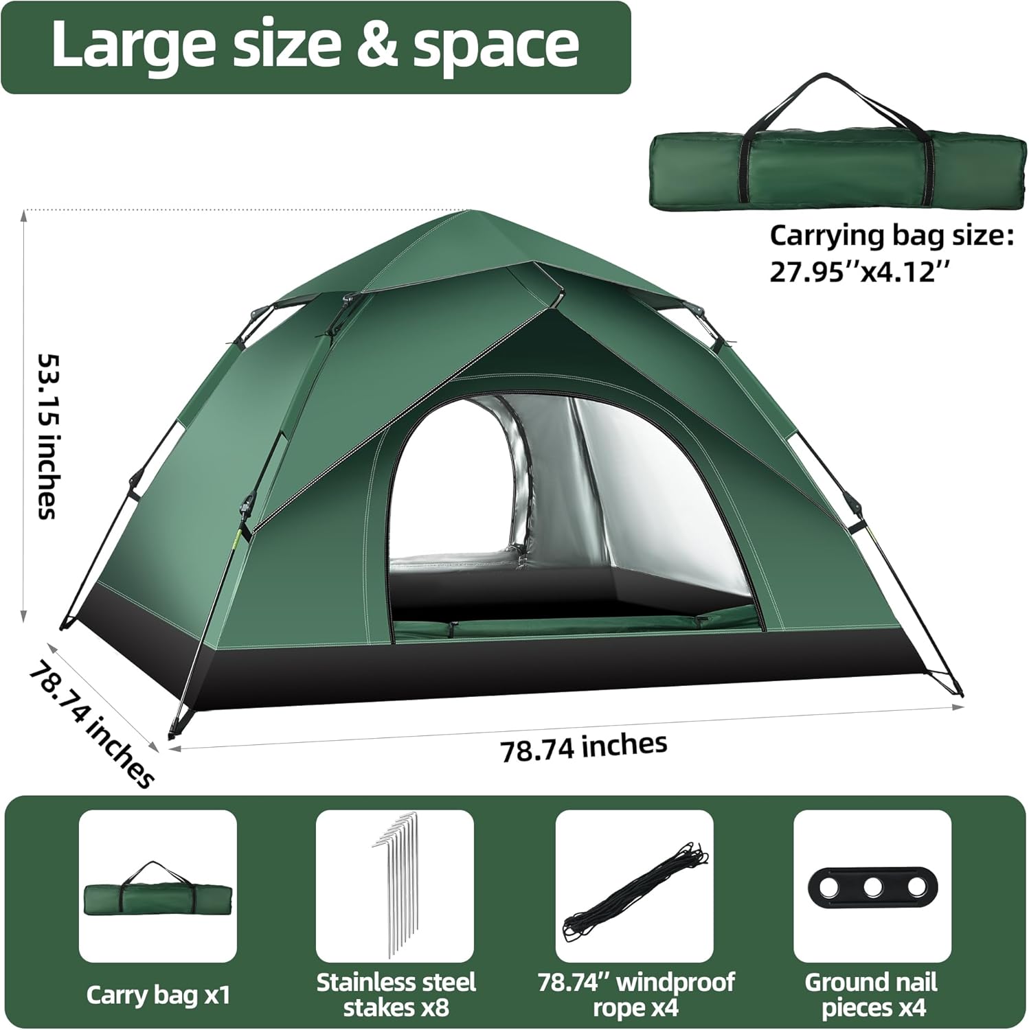 - 【60-Second Setup by 1 Person】 Stop struggling with tent poles! Our instant pop-up tent with pre-attached poles sets up in under a minute. Just lift, extend, and secure – no tools or help needed. Perfect for solo adventurers seeking ease or pairs who want to spend more time enjoying the outdoors.