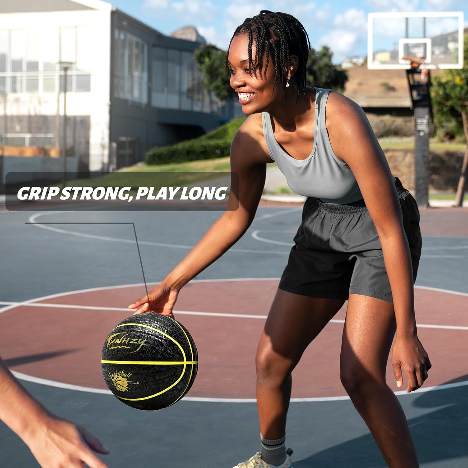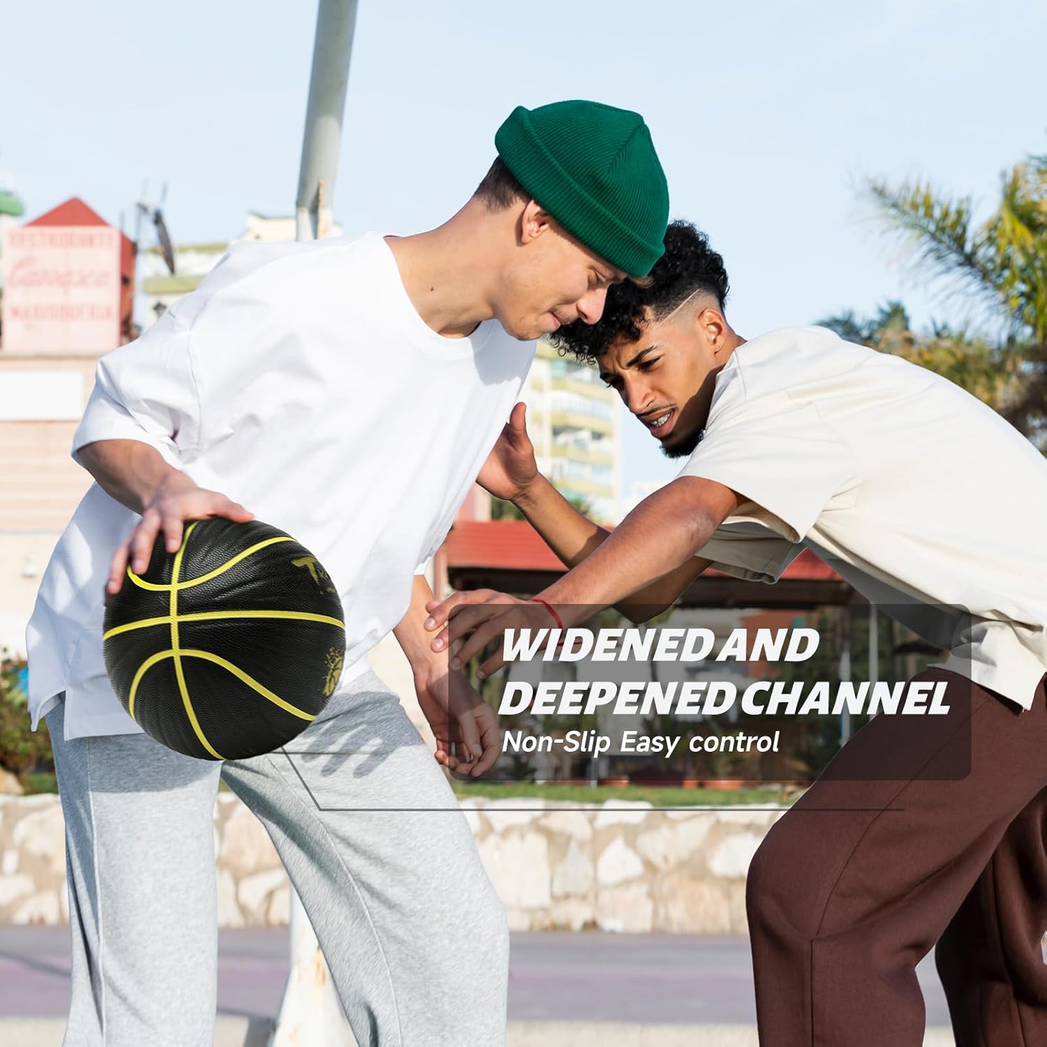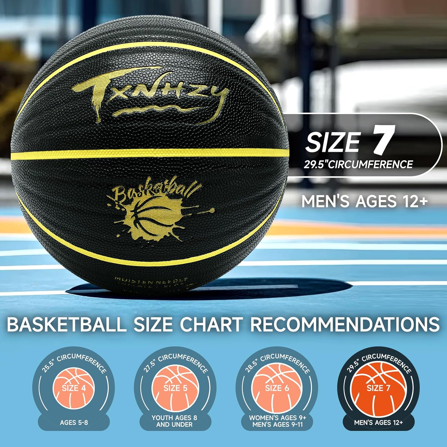 - Durable and Moisture-Absorbing: This outdoor basketball is made of moisture-wicking PU material that absorbs sweat and enhances grip. It performs well both outdoors and indoors, from street courts to hardwood floors.