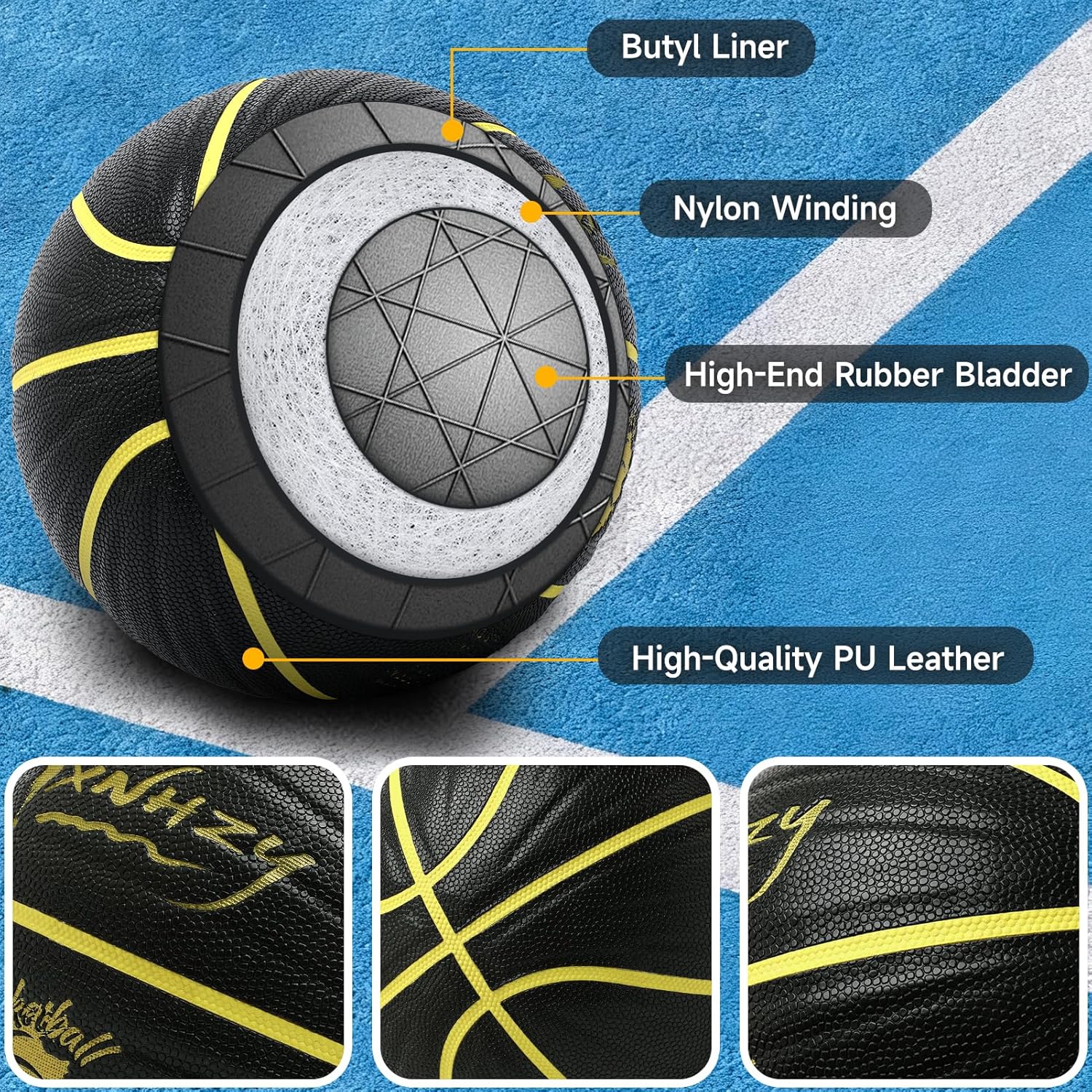 - Professional Butyl Bladder + Nylon Winding: Engineered with a pro-level butyl bladder and nylon winding, this basketball offers superior air retention, consistent bounce, and long-lasting durability.