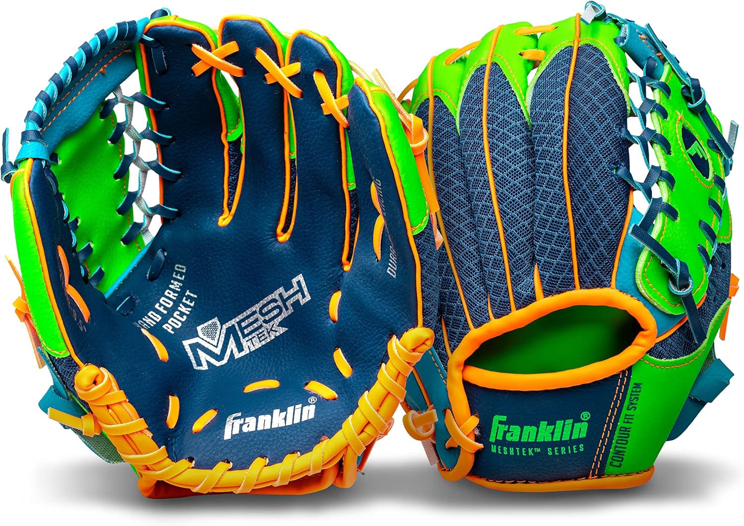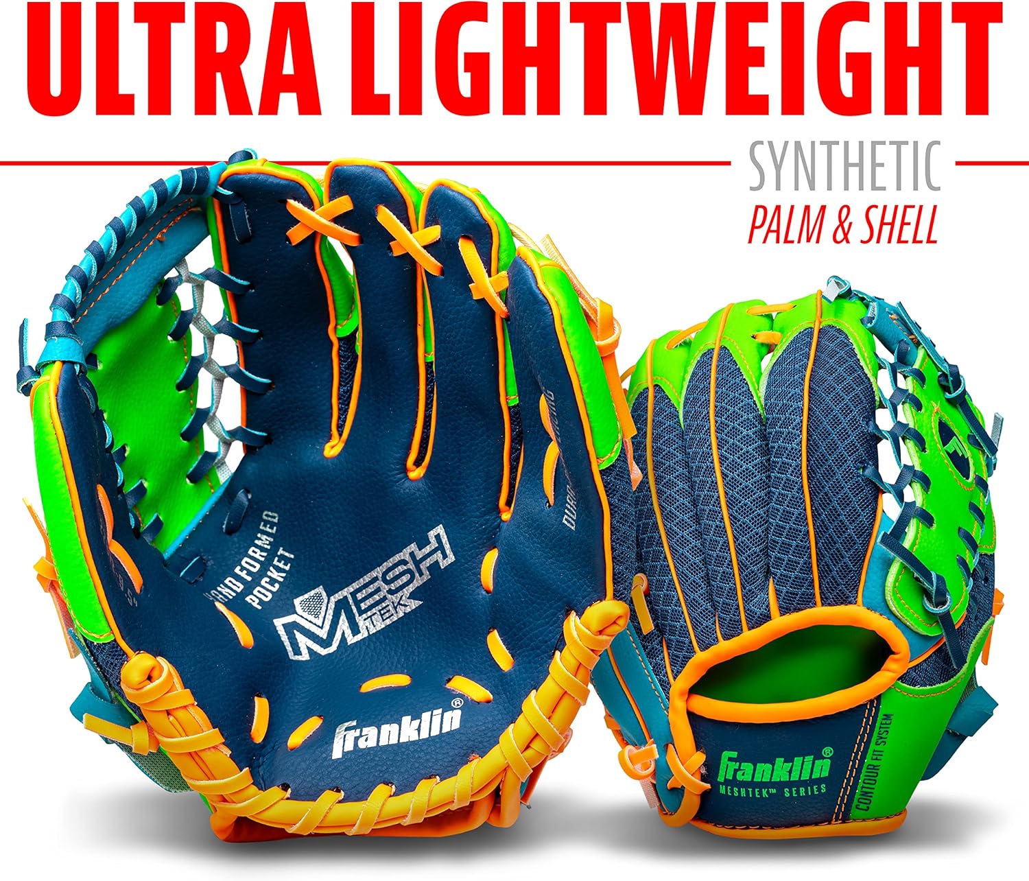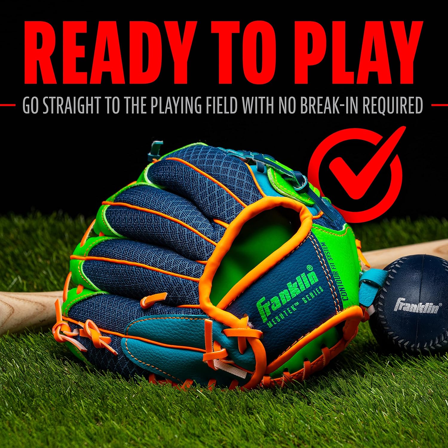 Franklin Sports Kids Baseball Glove + Foam Ball Sets – Meshtek Youth Teeball Gloves for Kids + Toddlers – Left + Right Hand Throw – 9.5″ Inch