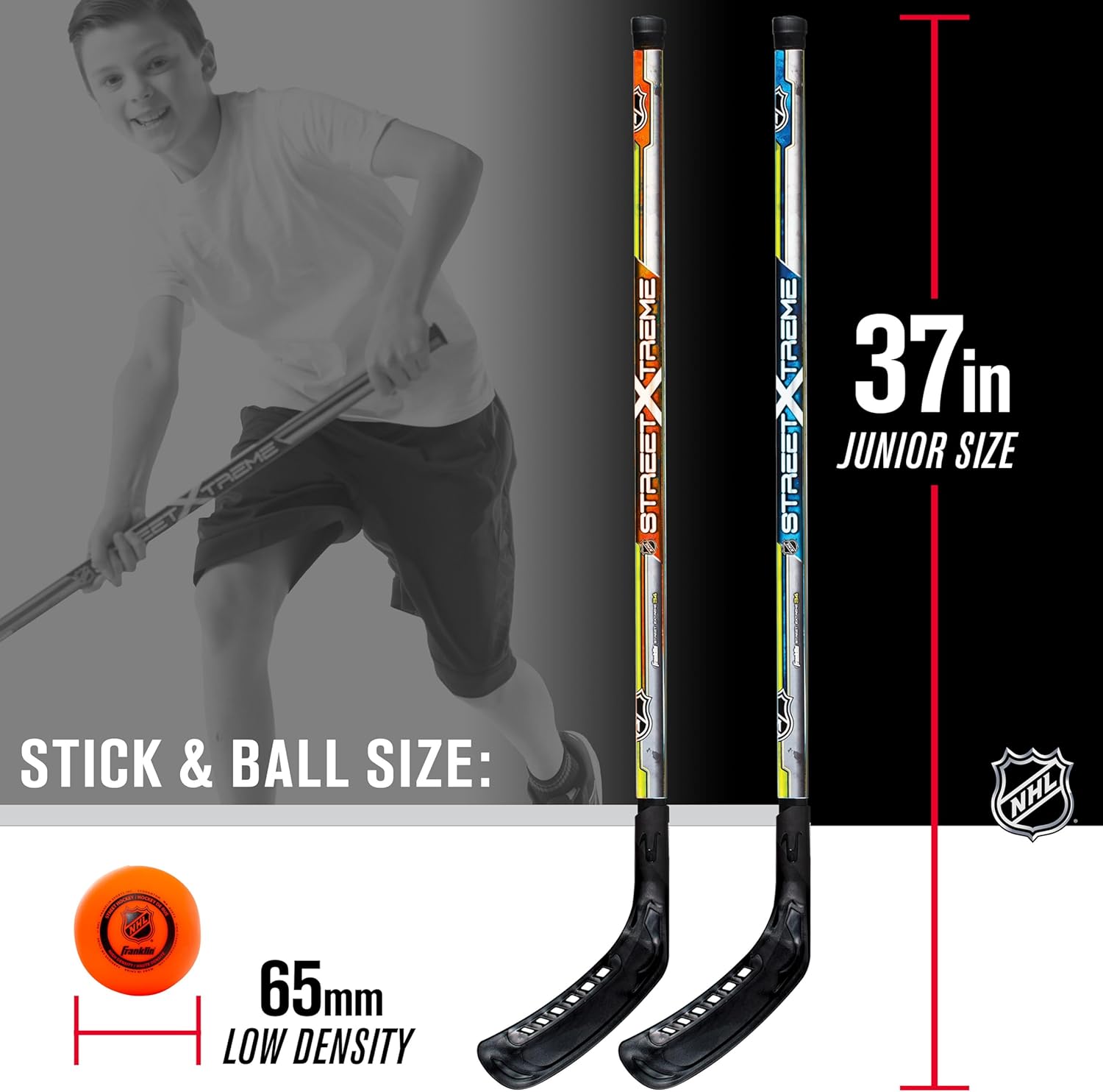 - SET INCLUDES: (2) 37inch junior hockey sticks and (1) official size 65mm low density street hockey ball