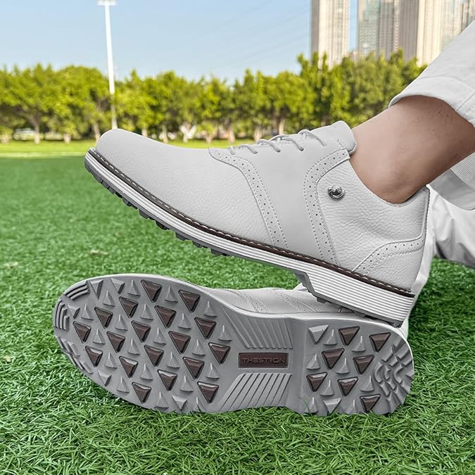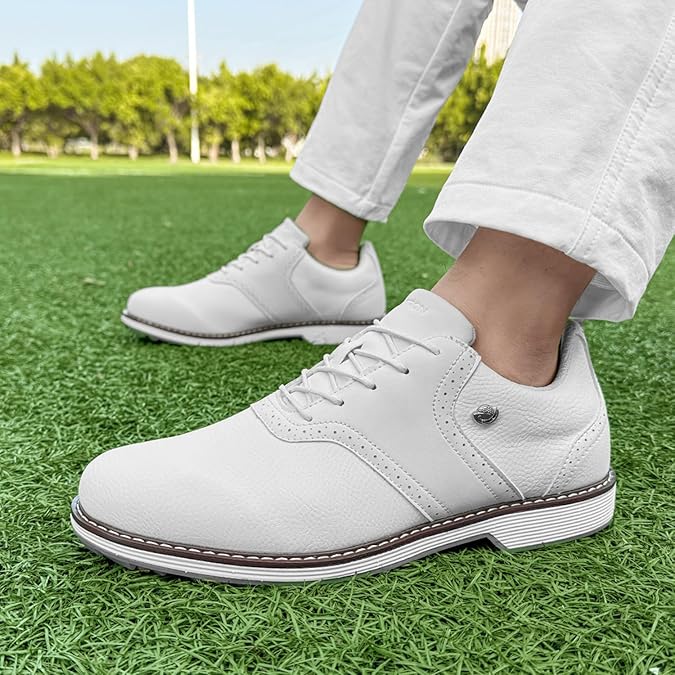 • ● Spikeless and Comfortable: With a spikeless sole design, these shoes are perfect not only for the golf course but also for casual walks or other activities. The heavily padded insoles provide extreme comfort, making them perfect for extended wear.