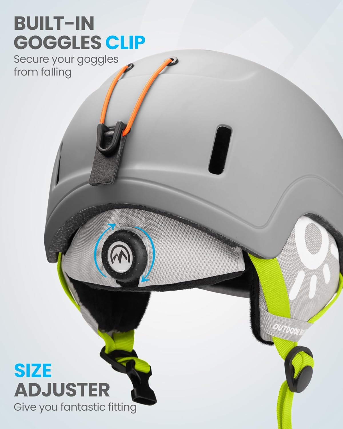 - Adjustable Fit: A well-fitted helmet is a safe helmet. The toddler ski helmet has an integrated adjustable dial fit system helps customize the right fit and comfort for different head shapes and sizes. Plus, there’s a litle secure snap at the rear to hold your goggle strap to the helmet.