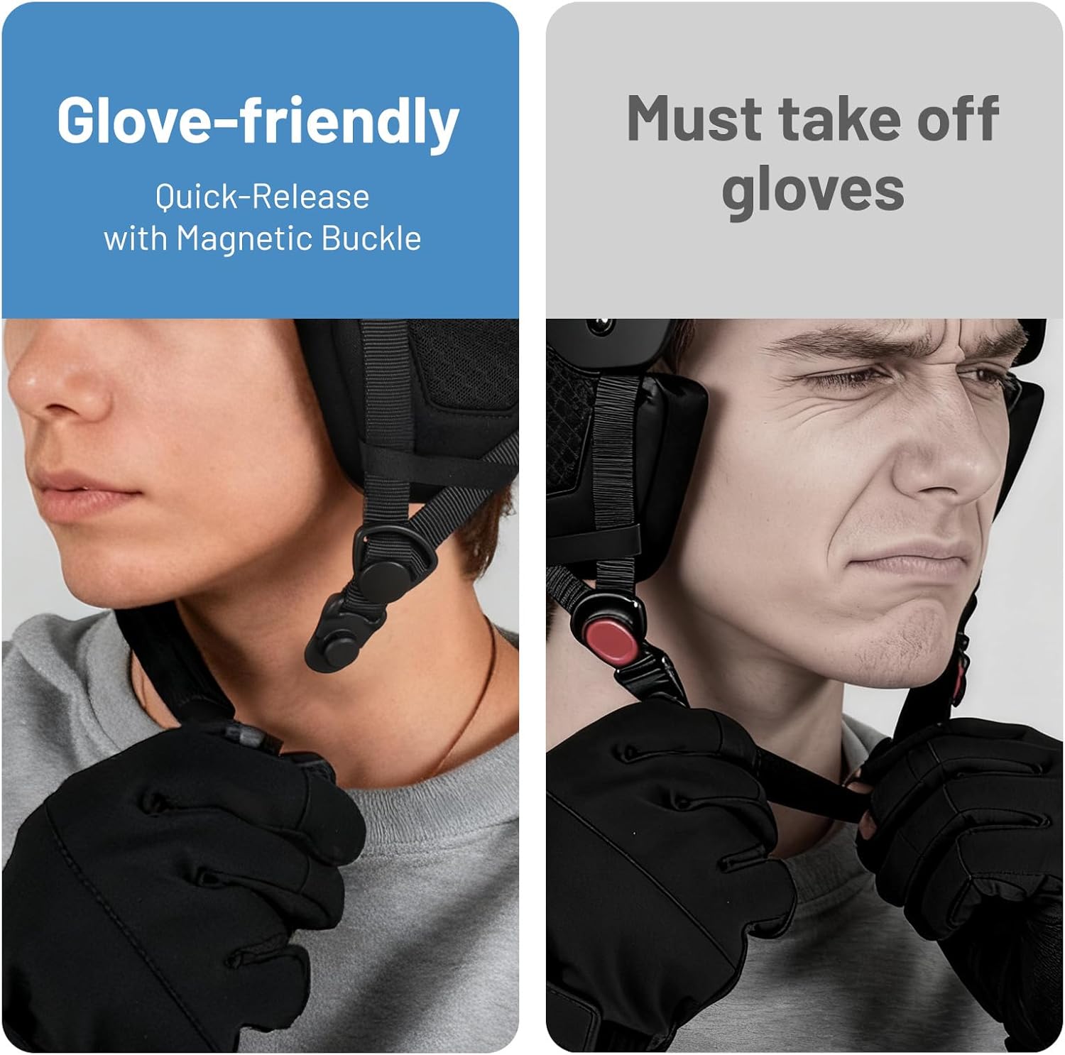 - Glove-Friendly – The snowboard helmet men features a magnetic buckle on the strap that is easy to operate even with ski gloves on. Includes a goggle clip to secure your eyewear.